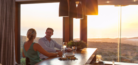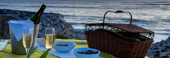 Vier die begin van julle romatiese wegbreek met ‘n verfrissende drankie met ‘n uitsig oor Walkerbaai en geniet dan ‘n heerlike middagete vir twee. Maak ‘n draai in julle suite en gaan dan saam met een van ons gidse na die ongerepte strande van Walkerbaai met eeue oue grotte, diep blou see en dramatiese sandsteen-rotse. Rond die dag af met ‘n uitsonderlike ses-gang aandete en bewonder die ongelooflike sterreprag in die vars naglug.