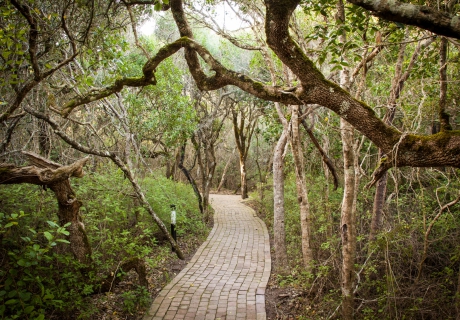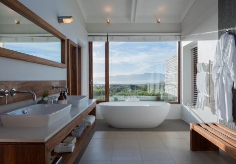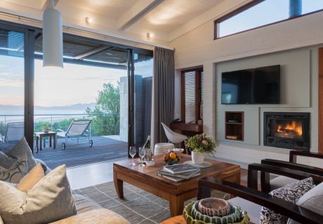 Der Weg von der Forest Lodge zu Ihrer nahegelegenen luxuriösen Suite führt durch einen uralten Milkwood Wald. Wenngleich alle diese Orte für Ruhe und Gelassenheit stehen, ist die Luxus-Suite Ihr persönlicher Rückzugsort. Die klaren Linien im Design, die eleganten Decken und die weiten Fenster laden zum Nachdenken ein. Hier spüren Sie die Nähe zur Natur, kehren in sich und finden zu sich selbst.