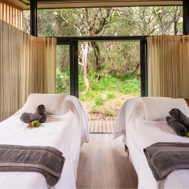 Located in the heart of the Milkwood forest, the Forest Lodge Spa offers three treatment rooms, including a couples' room, with glass doors that open into the ancient forest, inviting the calming sounds and scents of nature inside. The spa also has a gym for guests who want to get in a workout during their stay.