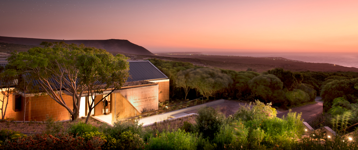 The art gallery is an innovative space showcasing over 120 unique artworks of the Grootbos Florilegium that depicts the plants of the Cape Floral Kingdom and the insects and creatures that live among them. The building itself is set amidst fynbos and a Milkwood forest, the very landscapes celebrated in the artworks housed within. This masterpiece of architectural design allows for ample natural light to fill the contemporary exhibition rooms, without compromising the artworks.