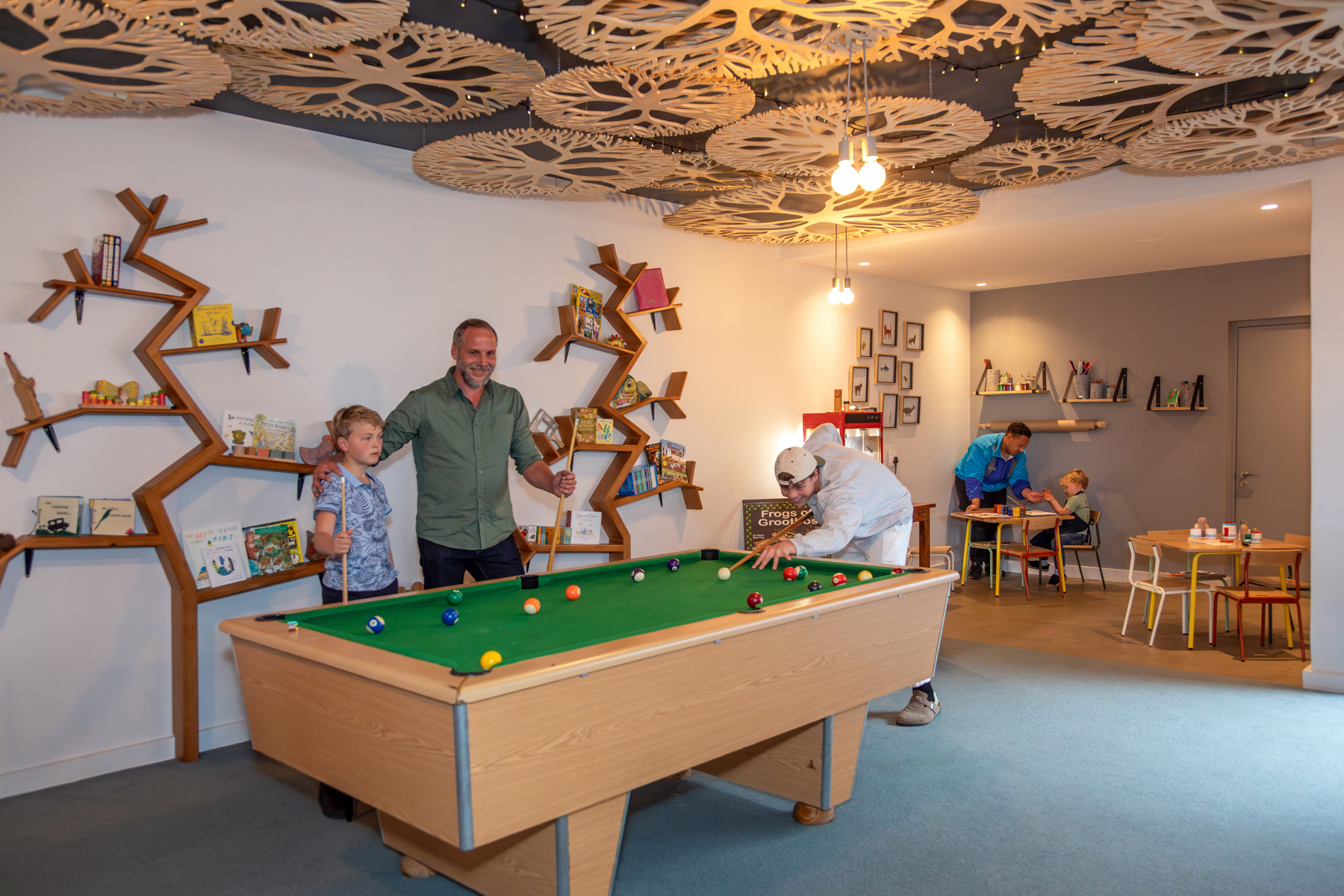 Enjoy supervised games, arts and crafts, spontaneous play, or snuggle down with popcorn and a laugh-out-loud movie after a long day of fun outside, leaving mom and dad to have a boring grown-up dinner alone.